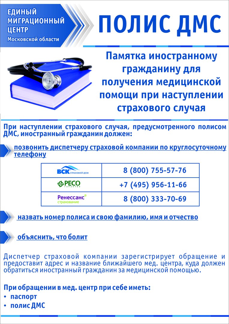Зачастую у иностранных граждан возникает вопрос, связанный с получением медицинской помощи, при наступлении страхового случая. Что делать? Куда обращаться? Сотрудники Миграционного центра Московской области "Гринвуд" составили небольшую памятку, которая поможет разобраться в последовательности действий.