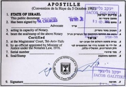 Как правило, это специальный штамп, который ставится на копию или оригинал документа, и содержит сведения о том, где и кем заверен документ. Апостиль можно поставить заранее в стране, выдавшей документ, а также в России, в консульстве или посольстве своей страны (посольства некоторых стран не проставляют апостиль). Каждое государство-участник Гаагской конвенции само определяет и назначает органы, которым предоставляются полномочия на проставление апостиля. Легализация с помощью апостиля признаётся странами, подписавшими Гаагскую конвенцию 1961 года. Среди них такие государства, как Французская Респпублика,Соединённые Штаты Америки, "Велико"Британия, ФРГ, Бельгия, а также достаточно экзотические страны типа Руанды, Азорские о-ва,мадагаскар. Россия также является участником данной конвенции.