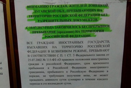 Рамадановский , в свою учередь издал распоряжение начальникам территориальных огранов ФМС продлевать украинцам учёт на основании заявлений, но "индивидуально и под личную ответственность"