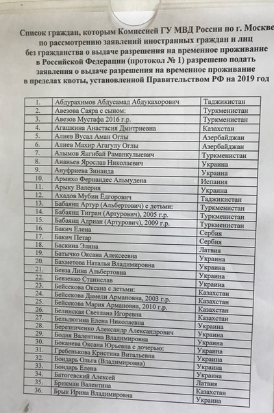 Если вы нашли свою фамилию в списке граждан , получивших квоту для получения РВП на 2019 на 2019 год обращайтесь в любой из центров МВП для получения полного пакета документов и заполнение заявлений по ценам в 2-3 раза ниже чем в ММЦ Сахарово