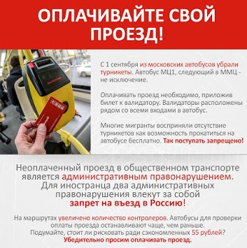 Настоятельно советую всем мигрантам, которые не хотят гарантированно получить 1 административный штраф - оплачивать проезд в автобусе МЦ1 в ММЦ Сахарово. Имейте в виду что 2 адм.штрафа караются запретом на въезд в РФ до 5 лет.
