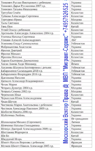 СПИСОК ПОЛУЧИВШИХ КВОТУ НА РВП в Апреле 2019 года