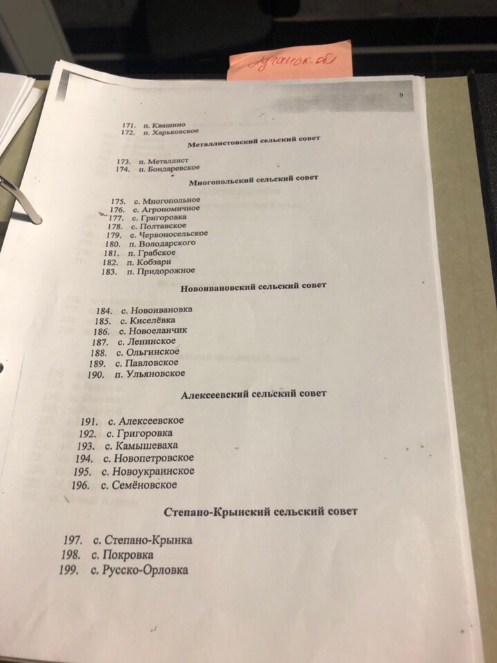 9. Металлистовский СС, Многопольский СС, Новоивановский СС, Алексеевский СС, Степанокрынский СС