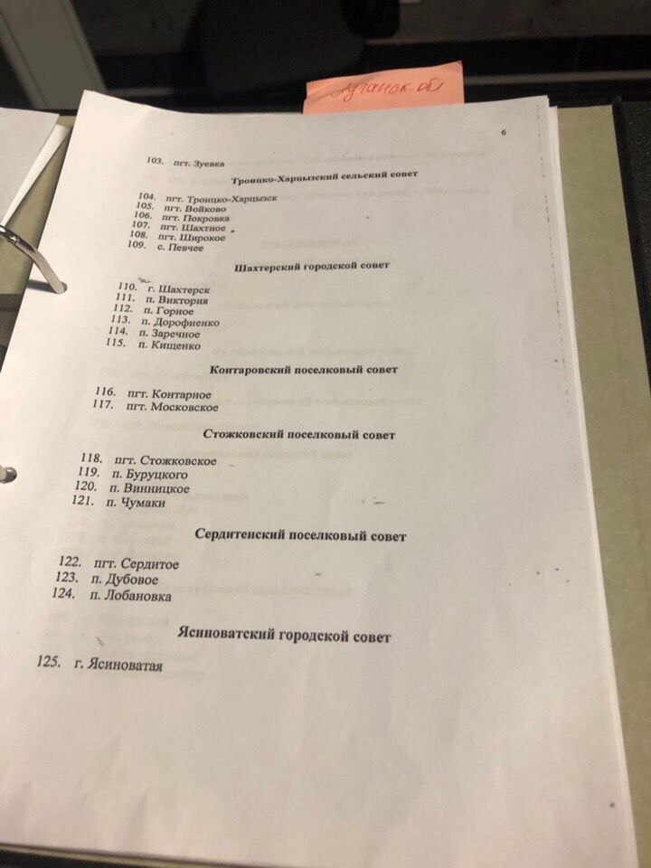 6.Троицко-Харцызский СС, Шахтерский ГС,Контаровский ПС, Стожковский ПС, Сердитенский ПС, Ясиноватский ГС.