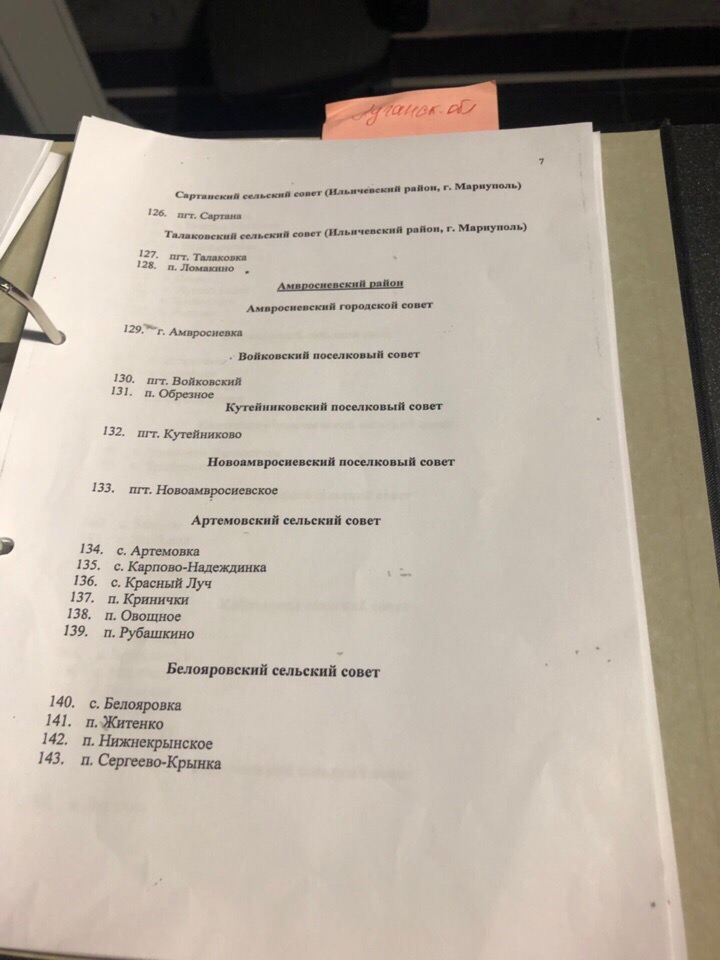 7. Амвросиевкий район: Амвросиевский ГС, Войковский ПС, Кутейниковский ПС, Новоамвросиевский ПС, Артемовский СС, Белояровский СС.