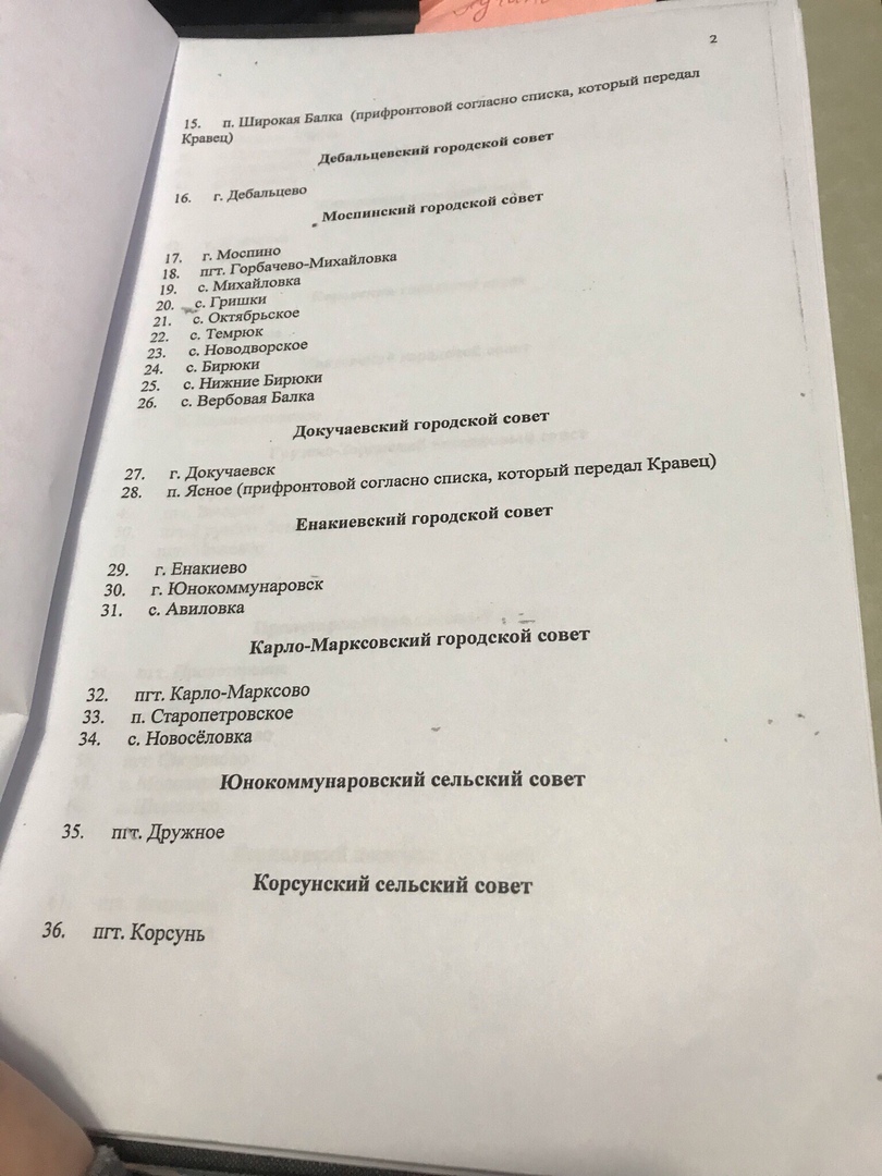 2. Дебальцевский ГС, Моспинский ГС, Енакиевский ГС,Карло-Марксовский ГС, Юнокоммунаровский , Корсунский СС.