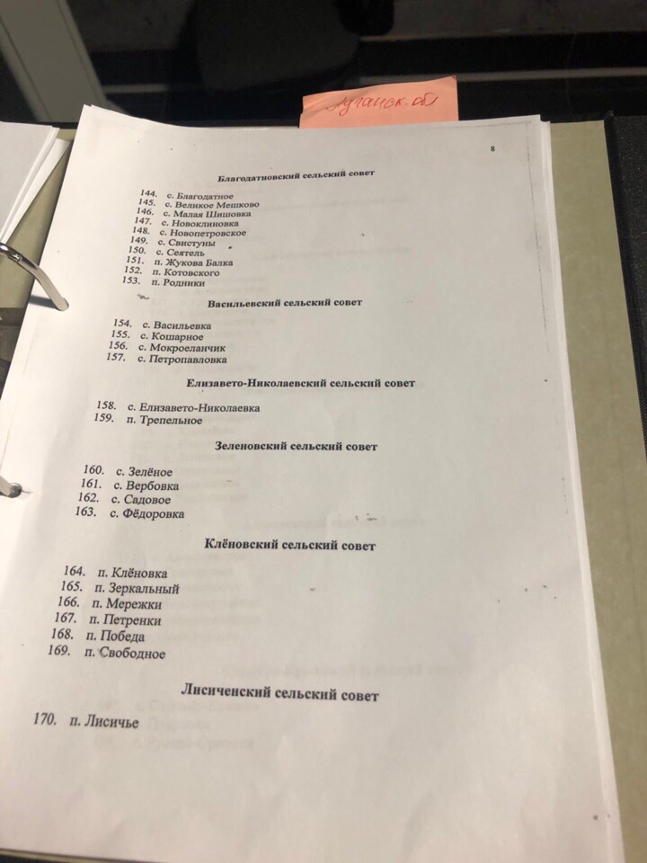8. Благодатниковский СС,Васильевский СС, Елизавето-Николаевский СС, Зеленовский СС, Клёновский СС, Лисичанский СС.
