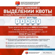 ПРИЁМ ЗАЯВЛЕНИЙ НА КВОТУ ДЛЯ РВП В МОСКВЕ НА АВГУСТ 2019 Г.