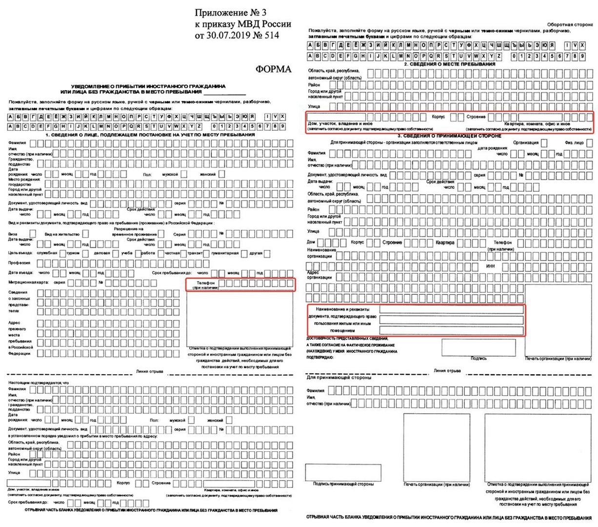 от 30.07.2019 № 514 "Об утверждении Административному регламента Министерства внутренних дел Российской Федерации по предоставлению государственной услуги по осуществлению миграционного учета иностранных граждан и лиц без гражданства в Российской Федерации, форм заявления иностранного гражданина или лица без гражданства о регистрации по месту жительства, уведомления о прибытии иностранного гражданина или лица без гражданства в место пребывания, отметок о регистрации (снятии с регистрации) иностранного гражданина или лица без гражданства по месту жительства, отметок о подтверждении выполнения принимающей стороной и иностранным гражданином или лицом без гражданства действий, необходимых для его постановки на учет по месту пребывания, проставляемых, в том числе, многофункциональным центром предоставления государственных и муниципальных услуг