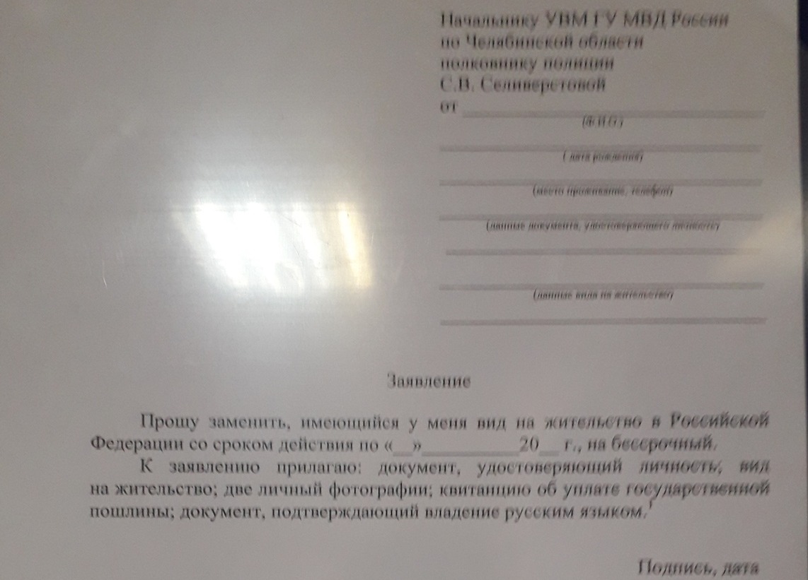 Заявление на бессрочный вид на жительство скачать образец и шаблон