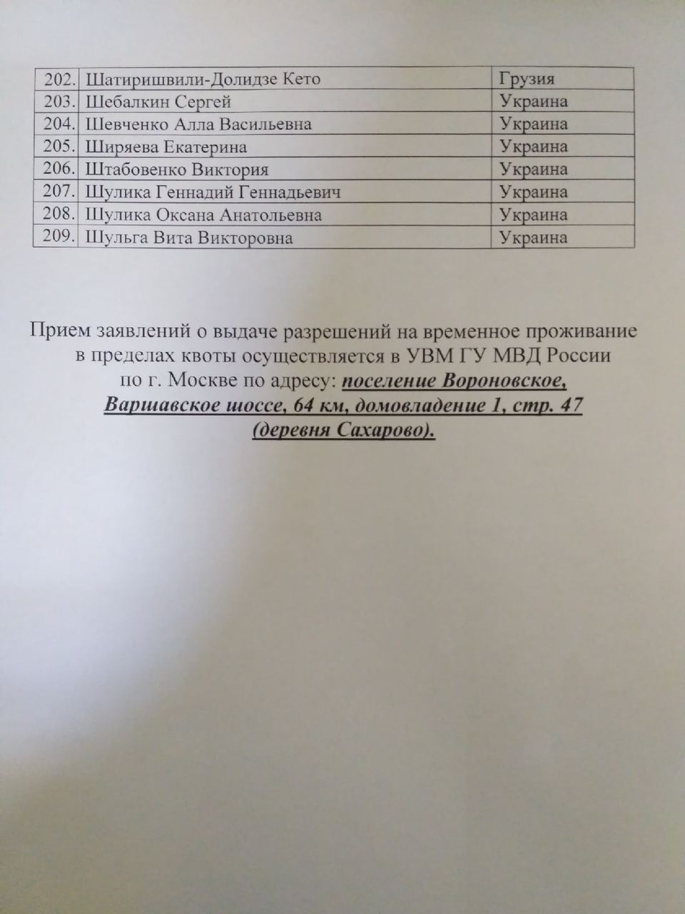 Если вы нашли свою фамилию в списке граждан , получивших квоту для полученияРВП на 2020 год обращайтесь влюбой из центров МВП для полученияполного пакета документов и заполнение заявлений по ценам в 2-3 раза ниже чем в ММЦ Сахарово