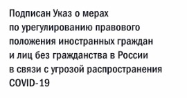 Предлагаем ознакомиться с официальным разъяснением от управления по вопросам миграции МВД РФ в связи с 274 указом президента Российской Федерации о временной отмене патентов и разрешений на работу, РВП и ВНЖ, регистраций и миграционных карт как необходимым для работы и проживания в России, иностранным гражданам, документов, а также запрете на депортацию.