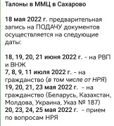 Талоны ММЦ Сахарово на РВП ВНЖ НРЯ гражданство РФ 18 мая 2022