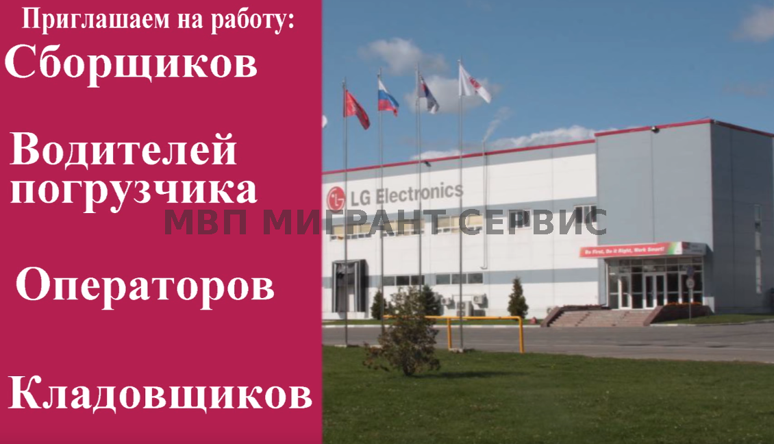 - Завод LG приглашает на работу на вакансии: Сборщик.Штамповщик.Оператор литейного станка.Разнорабочий.