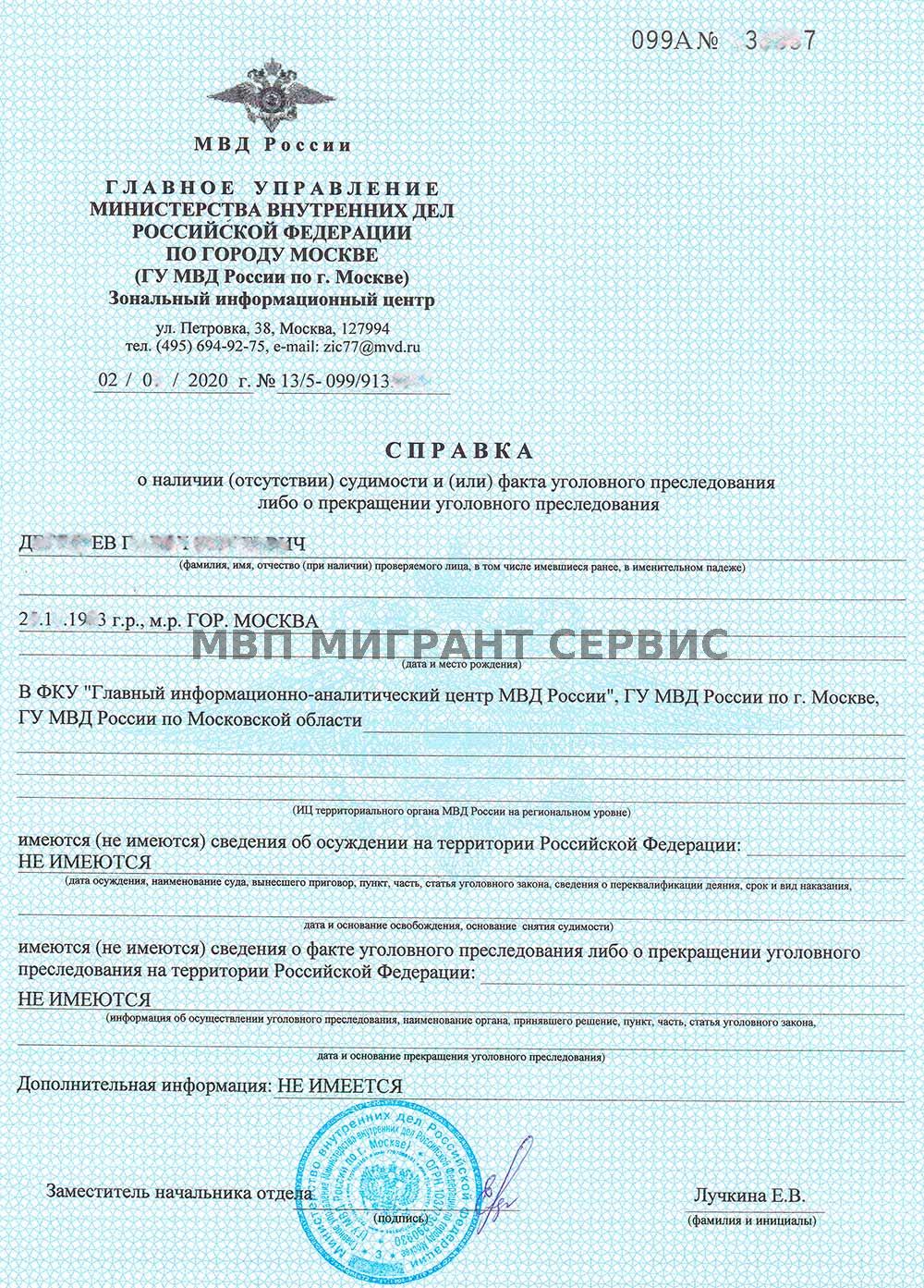 Получение справки об остутсвии судимости без доверенности в информационном центре МВД за 15 дней за 3500 рублей