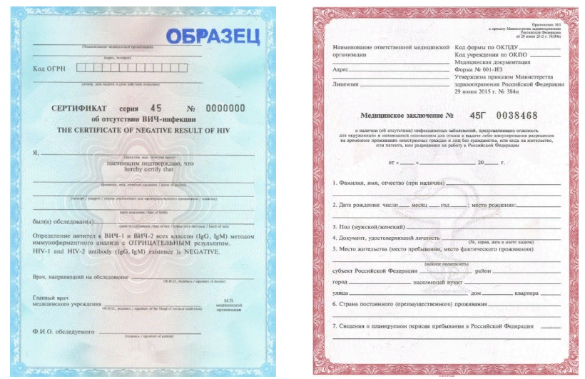 Как выглядят легальные медицинские справки для РВП и ВНЖ ( ОБРАЗЦЫ )