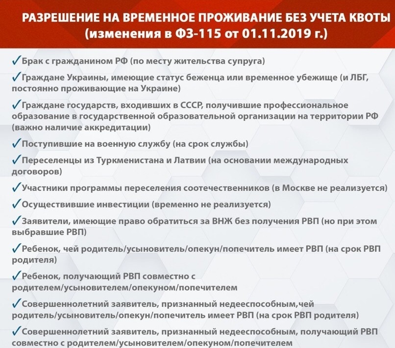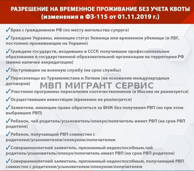 С 01.11.2019 расширился список иностранцев, имеющих право на получение Разрешения на временное проживание без квоты.